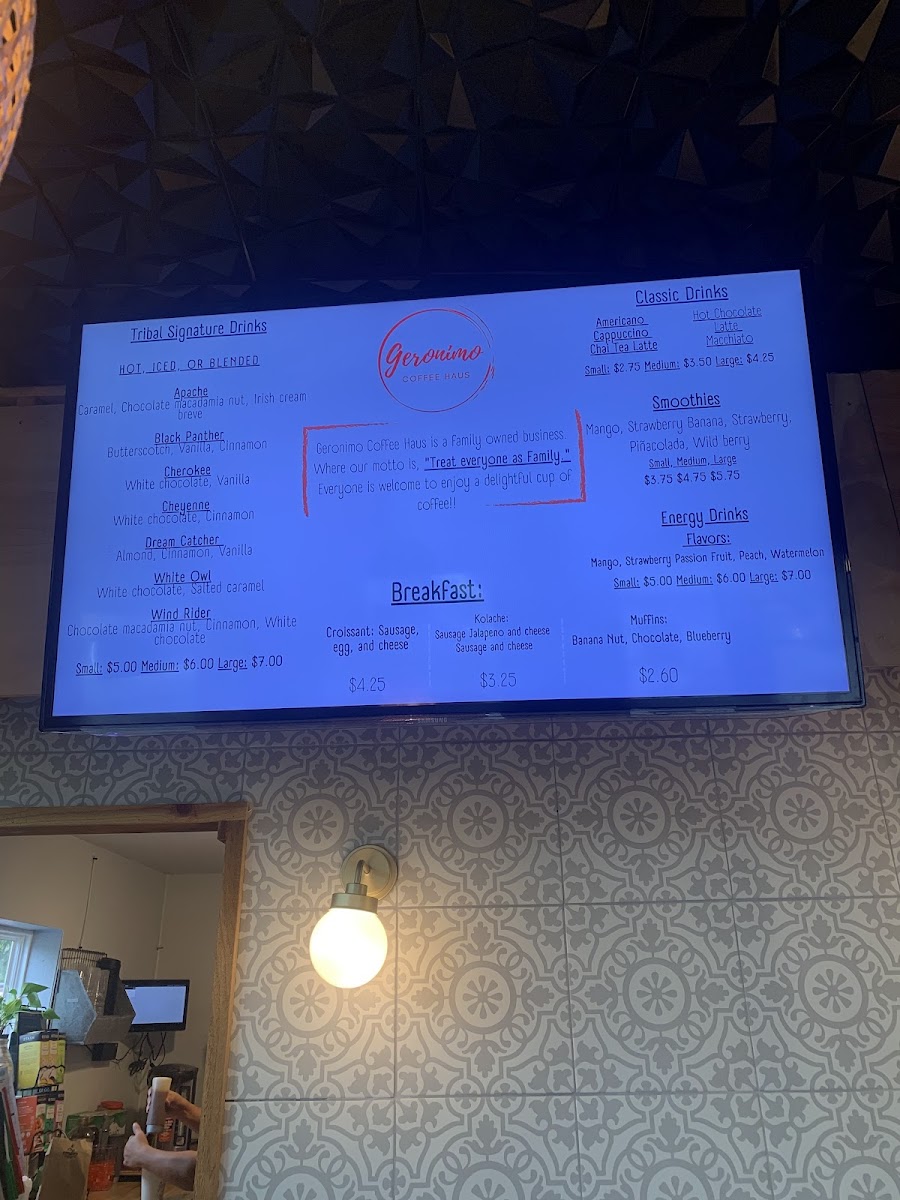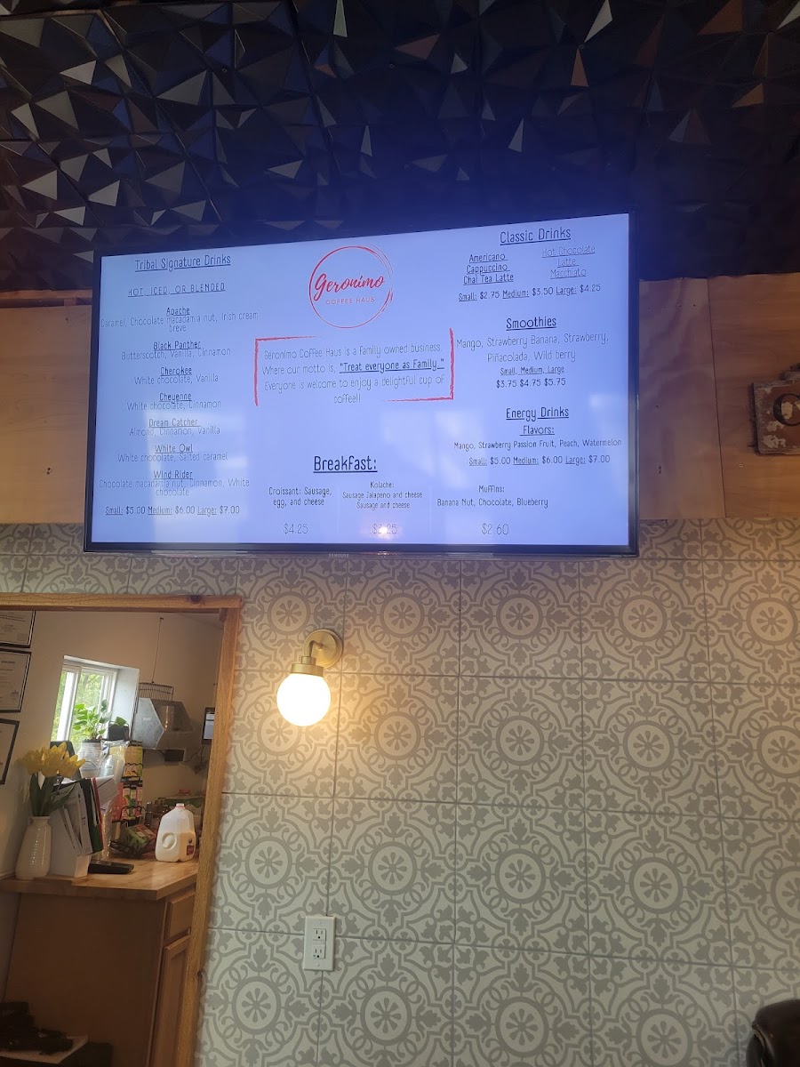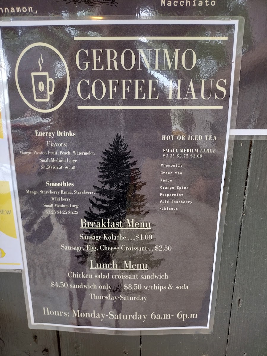 As a reviewer, the menu at Geronimo Coffee Haus leaves a warm and satisfying impression, especially for those who appreciate classic café comforts done well. The Coffee stands out as a reliable favorite, offering rich flavor and a smooth finish that pairs perfectly with their freshly baked Muffin, which is soft, flavorful, and ideal for a light breakfast or afternoon treat. For those who prefer something colder and more indulgent, the Frappuccino is a highlight, blending sweetness and creaminess into a refreshing drink that feels like a dessert in a cup. Overall, the menu focuses on simple, well-made staples rather than an overwhelming variety, and that simplicity works in its favor, making it a cozy spot where the quality of a few key items truly defines the experience.